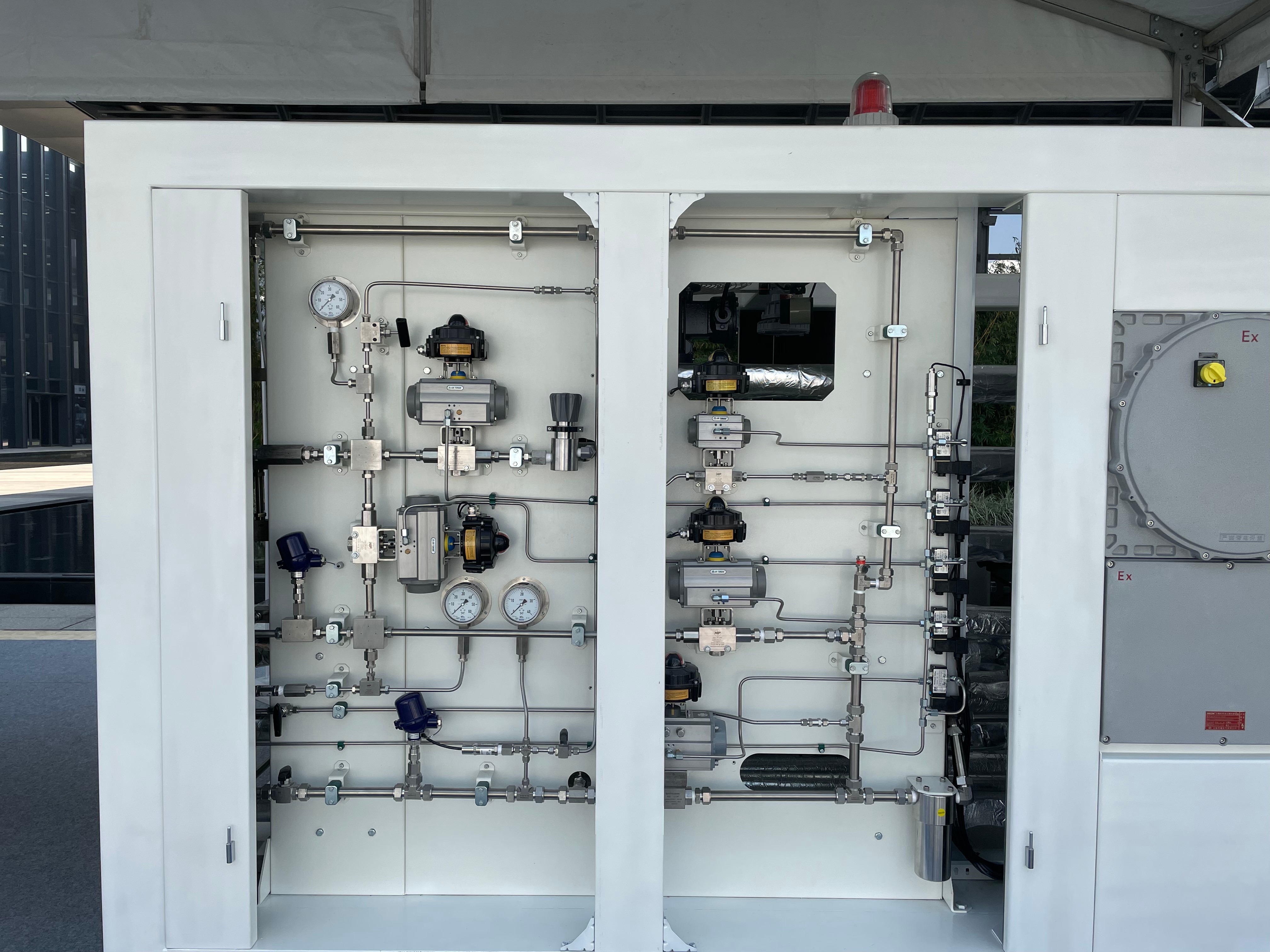 2、自然性、可燃性、毒性、腐蝕性氣瓶柜應在排風出口設置氣體泄露偵測器。
