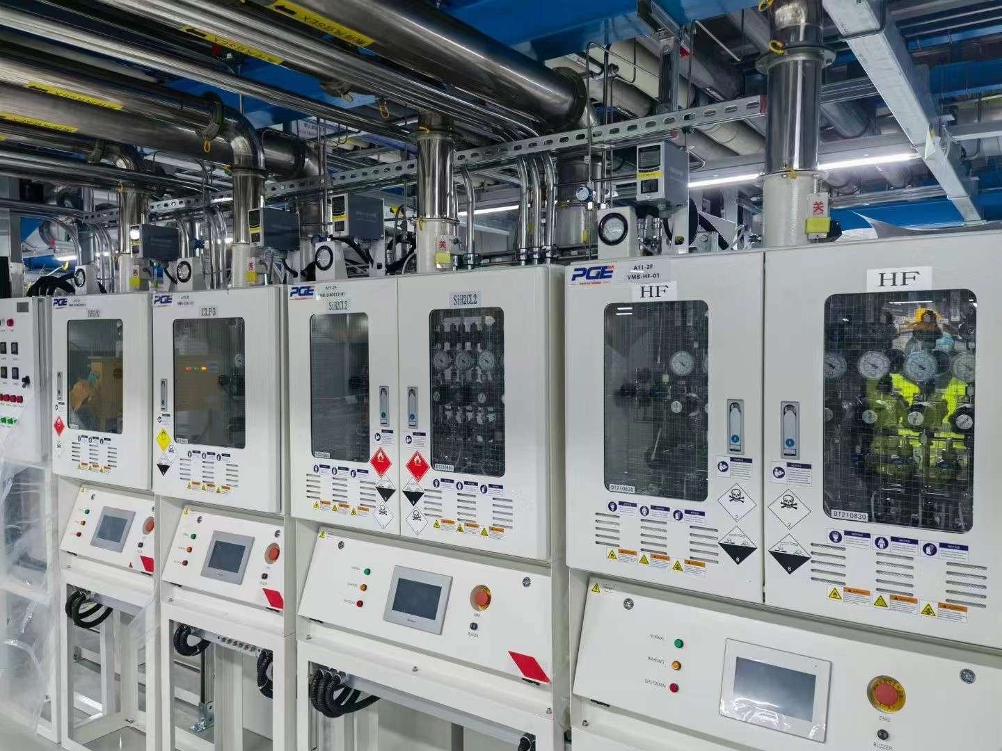 特種氣體的供應方式截至目前為止,幾乎皆用鋼瓶的方式進行。一般常用的為高壓鋼瓶,依其填充的氣體特性有分為氣態(tài)和液態(tài)兩種。一般氣體依液態(tài)儲存于鋼瓶內,瓶內壓力較高,所以最佳方式是選用吸附式氣態(tài)鋼瓶,以氣體分子與吸附劑間的范德瓦力將氣體吸附于吸附劑孔隙中,其優(yōu)點為供氣壓力低于一個大氣壓,無任何泄漏的危險,且供氣量為普通高壓鋼瓶的10倍,低蒸汽壓的氣體以液態(tài)儲存于鋼瓶內;針對易燃易爆,有毒性腐蝕性的氣體,常將鋼瓶至于特氣柜中,再通過管路將氣體供應至現(xiàn)場附近的閥箱,經過一系列的控制而后進入用氣點;一般惰性氣體以開放式的氣瓶架和閥盤供應。